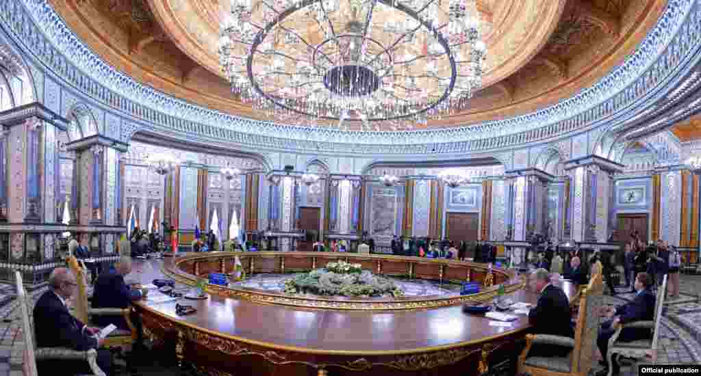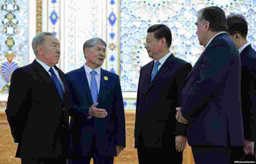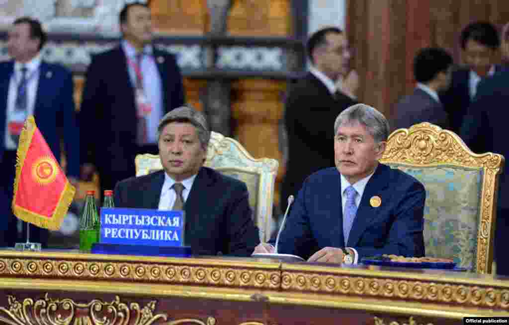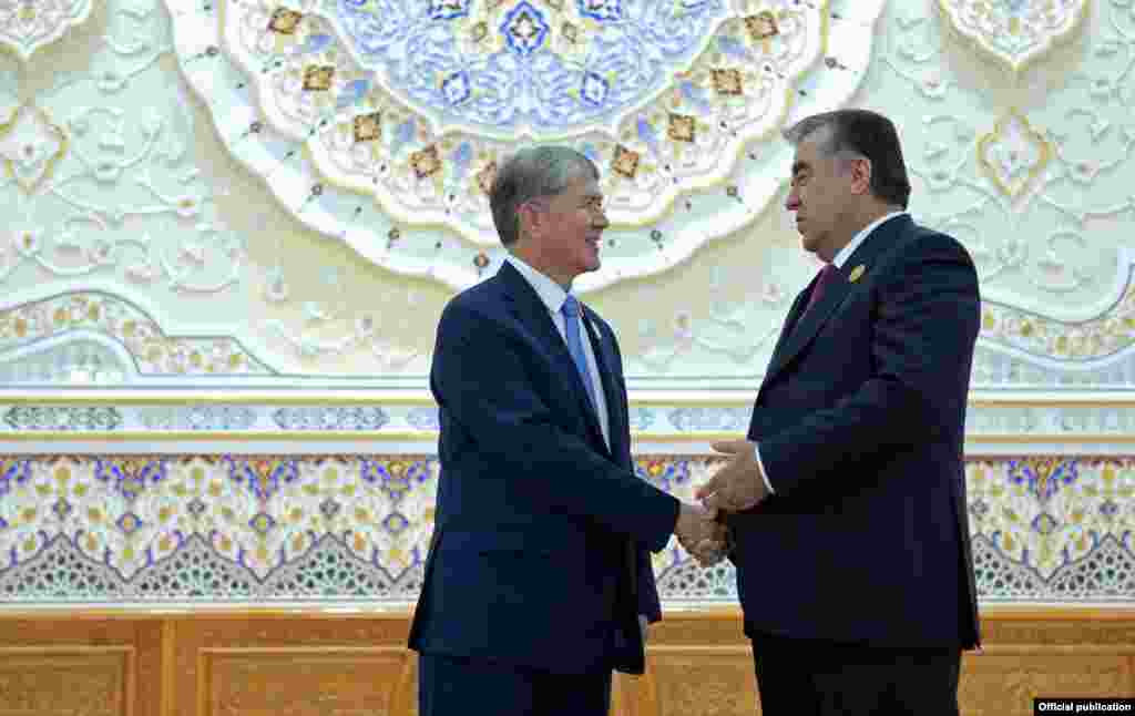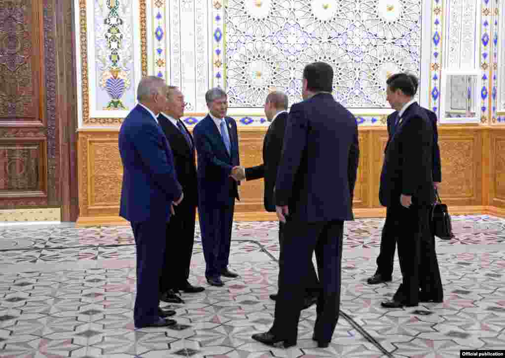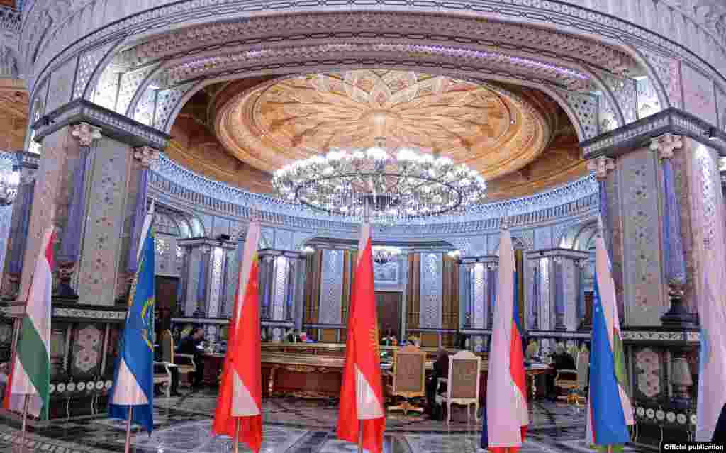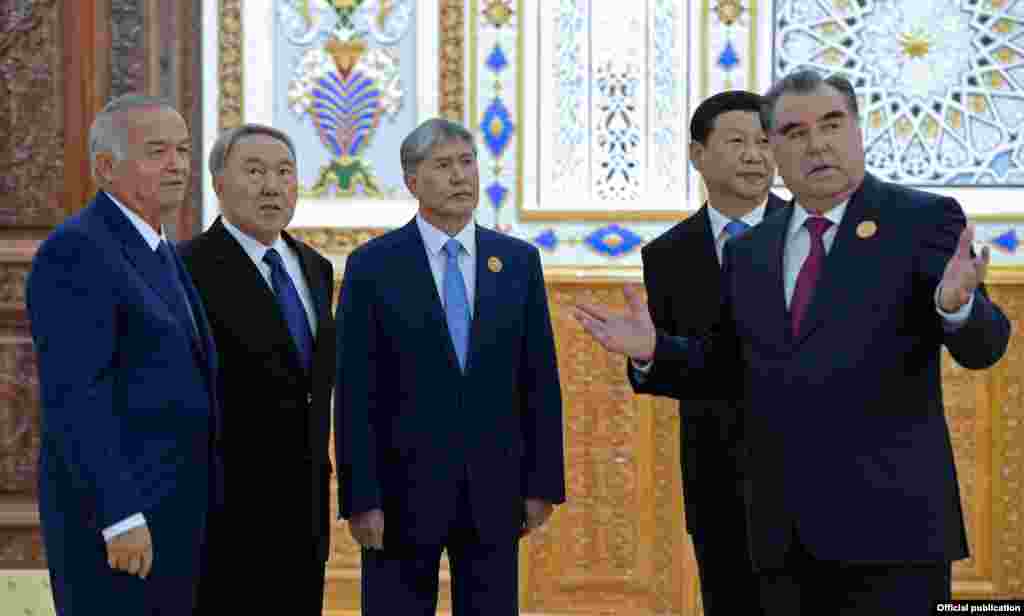 Тажикстандын борбору Дүйшөмбүдө Шанхай кызматташтык уюмунун саммити башталды. Учурда уюмга мүчө өлкөлөрдүн президенттери жабык эшик артында күн тартипти талкуулап жатышат. Саммиттин күн тартибине аймактагы жана дүйнөдөгү саясий абал, Украина кризиси боюнча маселе киргени белгилүү болгон. (Сүрөттөр президенттин басма сөз кызматыныкы)