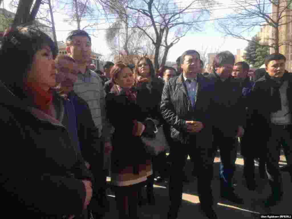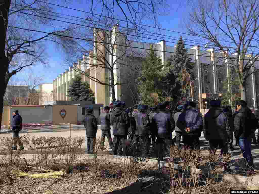 Парламенттеги "Ата Мекен" фракциясынан депутат Алмамбет Шыкмаматовду колдогондор Улуттук коопсуздук комитетинин алдында чогулууда. Депутат бүгүн эртең менен УКМКга чакырылган.