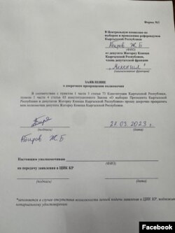 Жаныбек Абиров мандатын тапшыруу үчүн арыз жазды