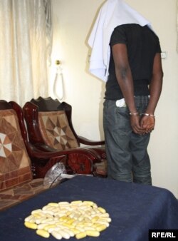 Кабыл аэропортунда героиндин 74 капсулу менен кармалган нигериялык аткезчи. 14-октябрь 2009-ж.