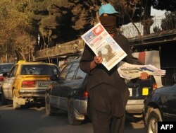 Жаш жигит "Kabul Weekly" гезитин сатып жүрөт. Кабыл.