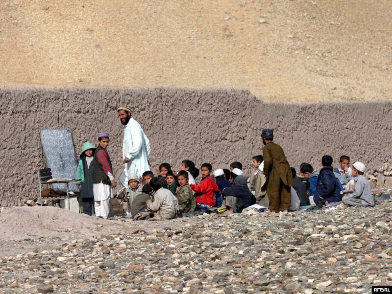 Волуси Жырга жаңы өкмөт мүчөлөрүн талкуулап жатканда, бул мугалим ачык асман алдында балдарды окутуп жатты. Кабыл. 21-декабрь 2009