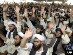 Пакистан. Талиптердин колдоочулары Ооганстан-Пакистан чек арасына жакын кыштактардын бириндеги жыйында. 1-июнь 2007-ж.
