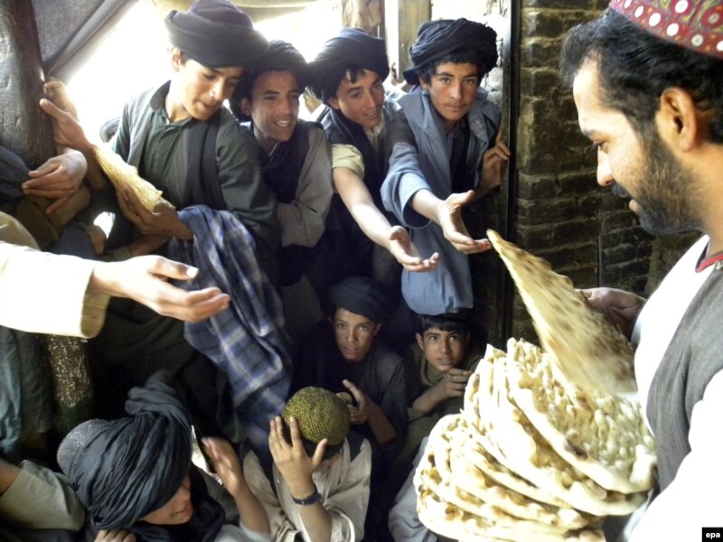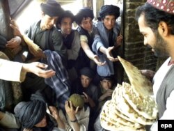 Пакистан. Медреседе окуган ооганстандык качкын талабалар навайчыдан кезектеги бекер чабаты нанын алышууда. Чаман шаары. 16-октябрь 2009-ж.