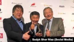 Кинорежиссер Садык Шер-Нияз, Голливуд жылдызы Анжелина Жоли жана Азия фильмдеринин бүткүл дүйнөлүк фестивалынын уюштуруучулары. 31.10.2017-ж.