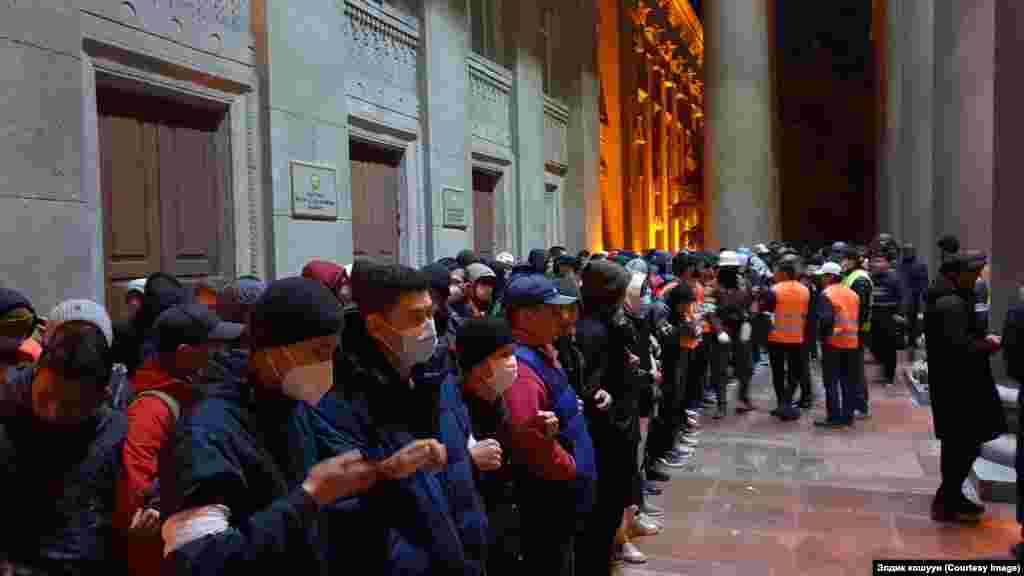 Бишкекте ыктыярдуу элдик кошуундун өкүлдөрү борбор шаардагы муниципалдык жана мамлекеттик ишканаларды, кафе-ресторандарды, соода борборлорун кайтарууда.