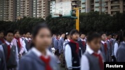 Студенттер Кытай КП БКсынын башкатчысы Ху Цзинтаонун партиялык курултайдын ачылышында сүйлөгөн сөзүн телемонитордон көрүшүүдө. Жуйи шаары. 8-ноябрь
