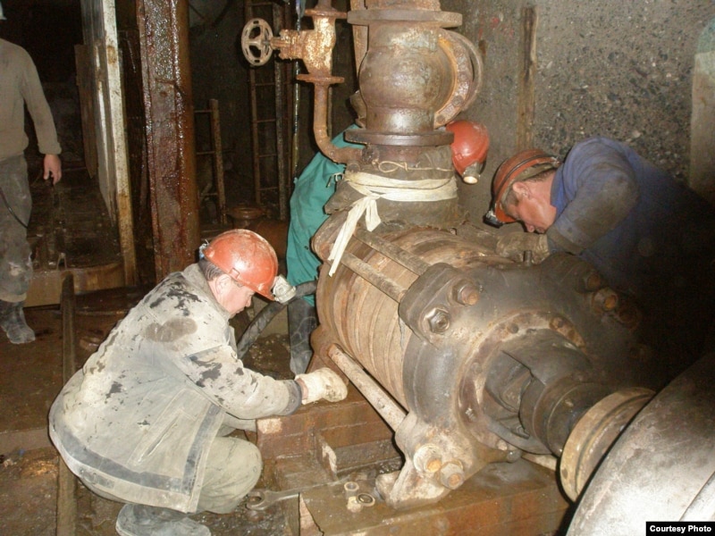 Айдеркен сымап комбинаты. Жер астында суу сорчу насосторду оңдоп жаткан жумушчулар. 27-июль 2007-жыл