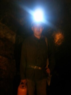 200 метр тереңде лифттен чыгып, кемерге тагылган аккумулятордон жарык алган фонардын шооласында бараттык.