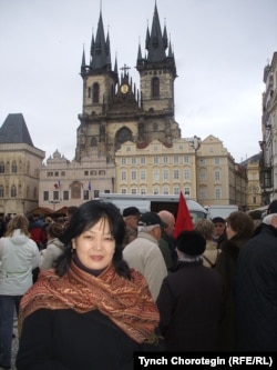 Гүлнара Арыкбаева, Италиянын Неапол шаарындагы "Манас" маданий жамаатынын (ассоциациясынын) жетекчиси, Прага шаарындагы айтылуу Эски шаарда. 2008-жылдын 16-ноябры. ТЧ. "Азаттык" үналгысы.