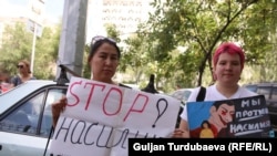 Жараян өтүп жатканда сот имаратынын алдында балдарга жана аялдарга карата зордук-зомбулукту токтотуу талабын койгондордун нааразылык акциясы өткөн.