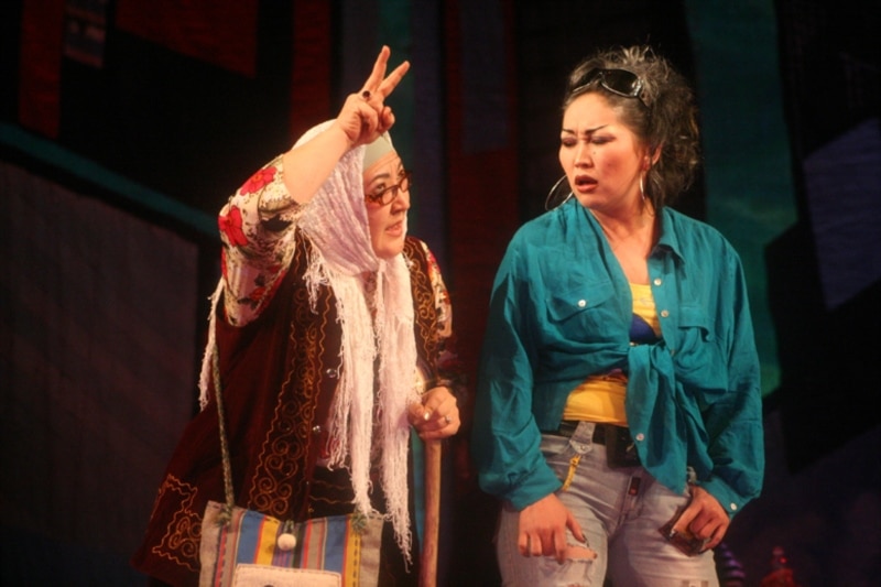 "Аста секин, колукту" спектаклинен бир көрүнүш