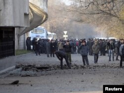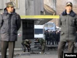 Милиция жардыруу болгон жерди курчоого алды. Бишкек, 30-ноябрь.