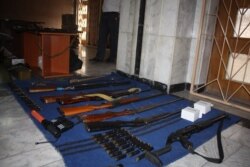 ИИМ кармалган кылмыш тобунан алынган курал-жарактарды көрсөтүүдө, 2011-жылдын 1-августу.