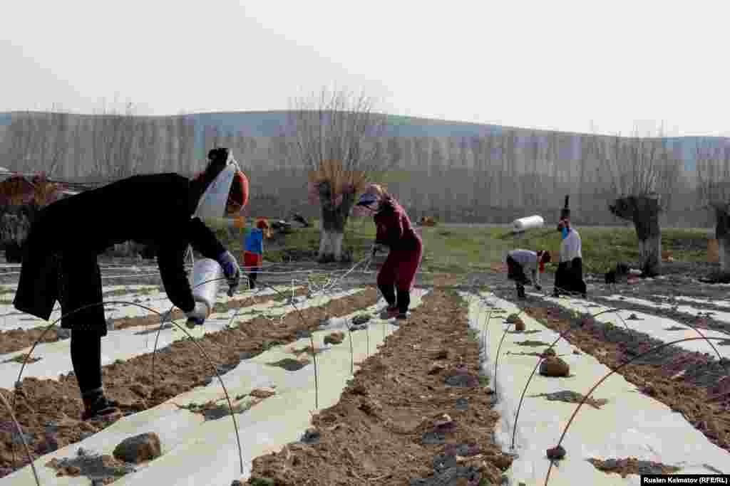 Жалал-Абадда жазгы талаа иштери күч алды. Ноокен районунда быйыл талаада иштеген кыз-келиндер арбын. Жашылчалардын тушүмүн эрте жыйноого ашыккан дыйкандын жаздагы мээнети сүрөттөрдө чагылдырылды.