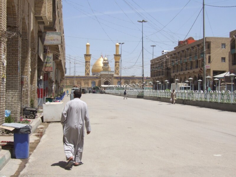 Ирактын Карбала шаарындагы имам Хусейндин саганасына кеткен жол.