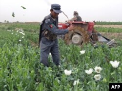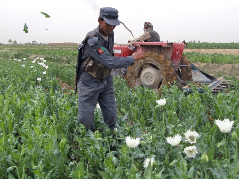 Ооган полиция кызматкери апийим талаасын жок кылууда.