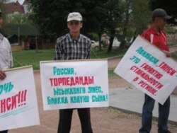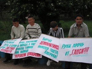Пикетте алар колдоруна “«Гансиден» колуңду тарт!”, “Орусия, торпедоңду Ысыккөлдө эмес, Байкалда сына”, “Америка - Кыргызстандын чыныгы досу”, “Ганси - Кыргызстан экономикасына пайда гана алып келүүдө”, “Орусия, аскер полигондоруң үчүн ижара акы төлө” жана башка ушул сыяктуу жазуулары бар транспаранттарды кармап турушту.