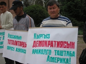 Ишембиде өткөрүлгөн антитеррордук күчтөрдүн аскерий “Манас” аба майданындагы базасын колдогон пикетте 10 талап коюлду. Анын бири Орусия Канттагы аба базасы, Чалдыбардагы байланыш полигону, Ысыккөлдөгү торпедо сыноочу жана Оштогу талаа полигону үчүн ижара акысын төлөөгө тийиш, деген талаптар коюлду.